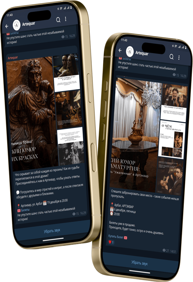 Там мы рассказываем о новинках спектаклей, уникальных закрытых мероприятиях и мероприятиях наших сообществ. Актуальная информация о нашем помещении, которая может появляться с задержкой на сайте